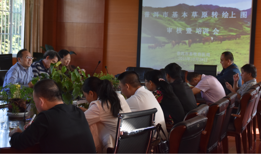 2015年10月,普洱市舉辦了基本草原轉(zhuǎn)繪上圖和數(shù)據(jù)建庫項(xiàng)目審核培訓(xùn)工作會(huì)。云南省農(nóng)業(yè)廳草原監(jiān)督管理站的尹副站長、闕老師、蔣老師等專家,和市農(nóng)業(yè)(畜牧獸醫(yī))局的專家,共同組成專家驗(yàn)收組,對(duì)項(xiàng)目逐項(xiàng)進(jìn)行審核,各縣局的分管領(lǐng)導(dǎo)、縣飼草飼料站站長、業(yè)務(wù)技術(shù)骨干及市級(jí)相關(guān)人員參會(huì)。項(xiàng)目通過了省、市級(jí)審核,仍有坡度、放牧季節(jié)、割草地面積以及某些縣的氣溫降水等問題需要修改和調(diào)整。審核會(huì)后,公司技術(shù)人員為參會(huì)人員深入淺出地講解了Arcgis。學(xué)會(huì)軟件后,工作人員可以對(duì)基本草原上圖成果進(jìn)行編輯、瀏覽、查詢、統(tǒng)計(jì)等操作。 |